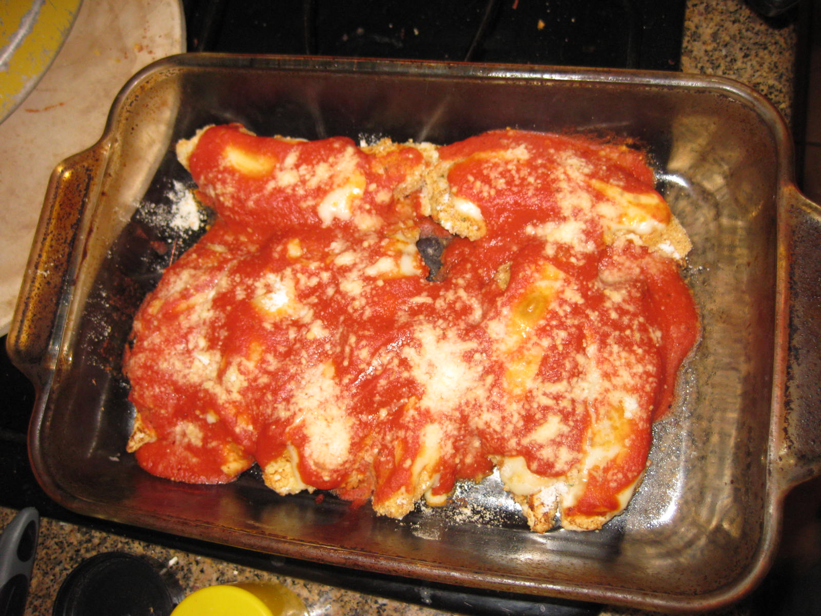 - Pour spaghetti sauce over all.