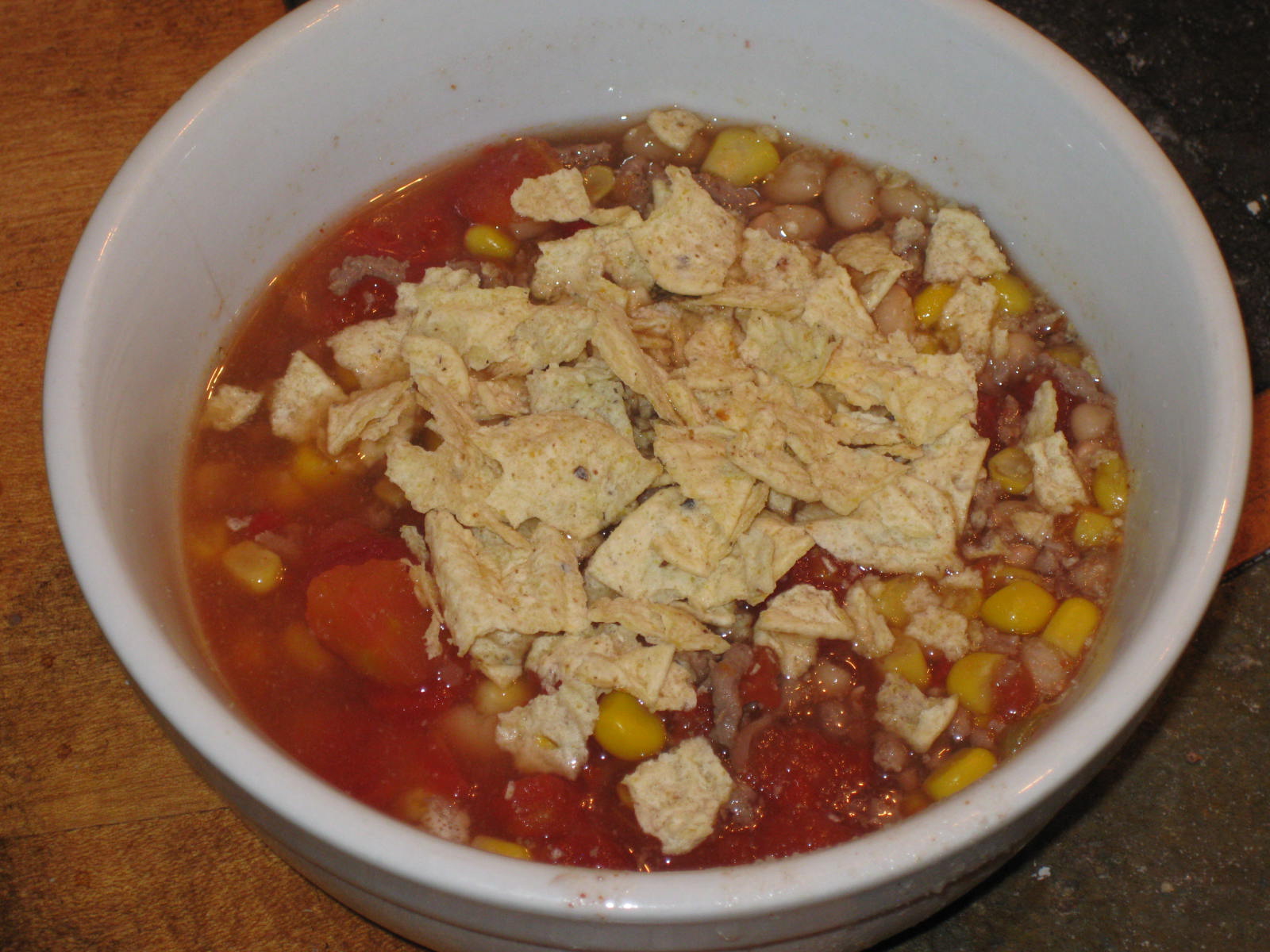 - Tortilla chips, crushed