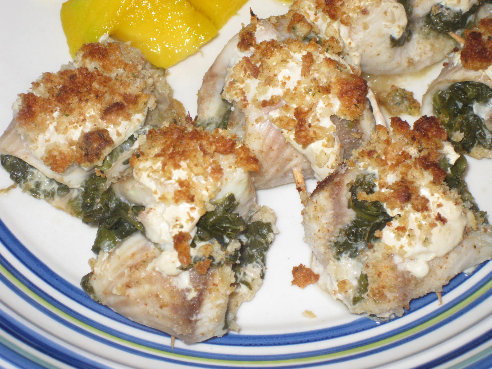 - Cut the fish in half and rolled spinach in the middle and pin with a toothpic.