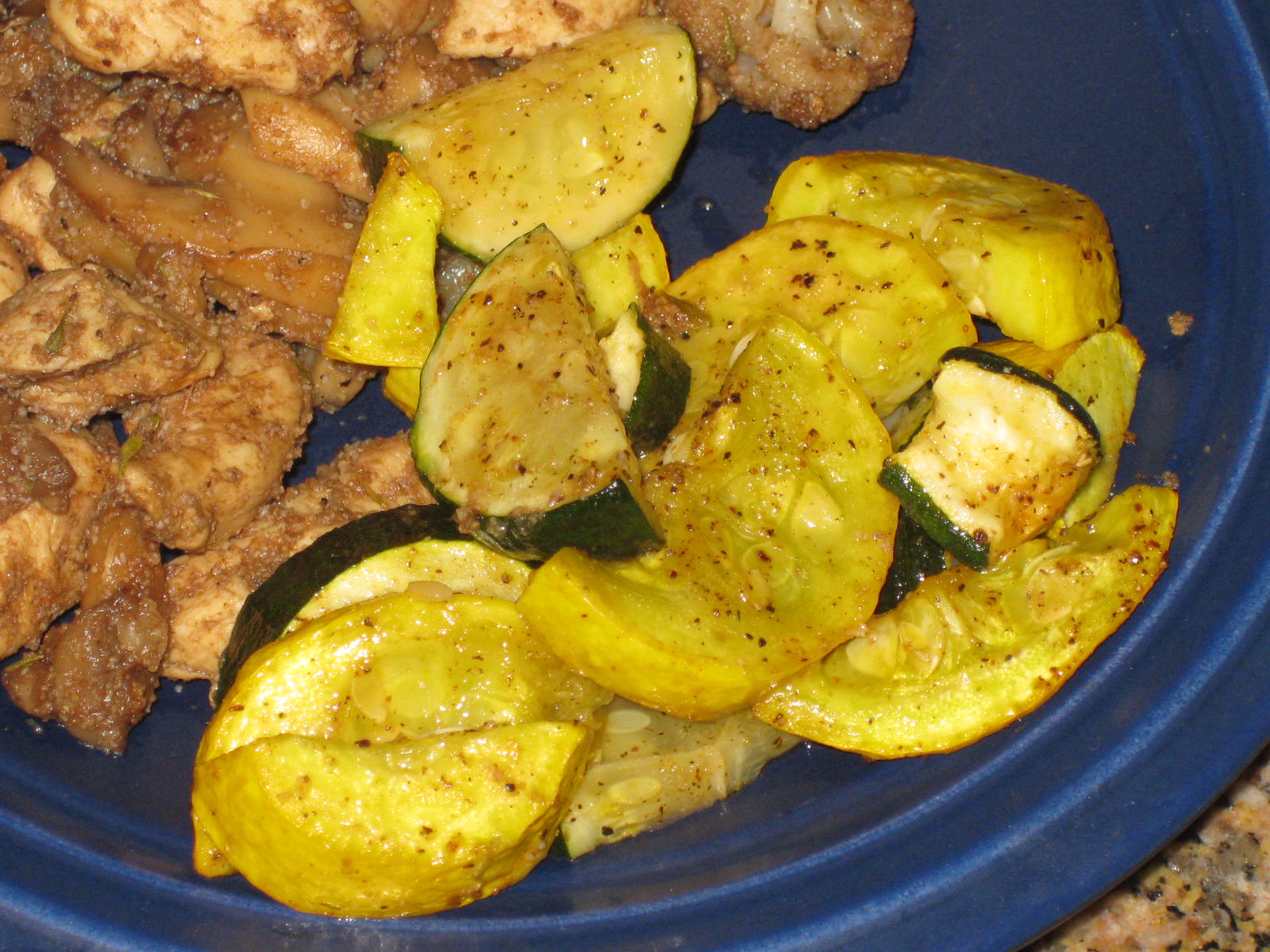 - Cut Zucchini and squash into medalians and in half again if they are large. Place them on the foil and spray with cooking spray; Sprinkle with salt and pepper.