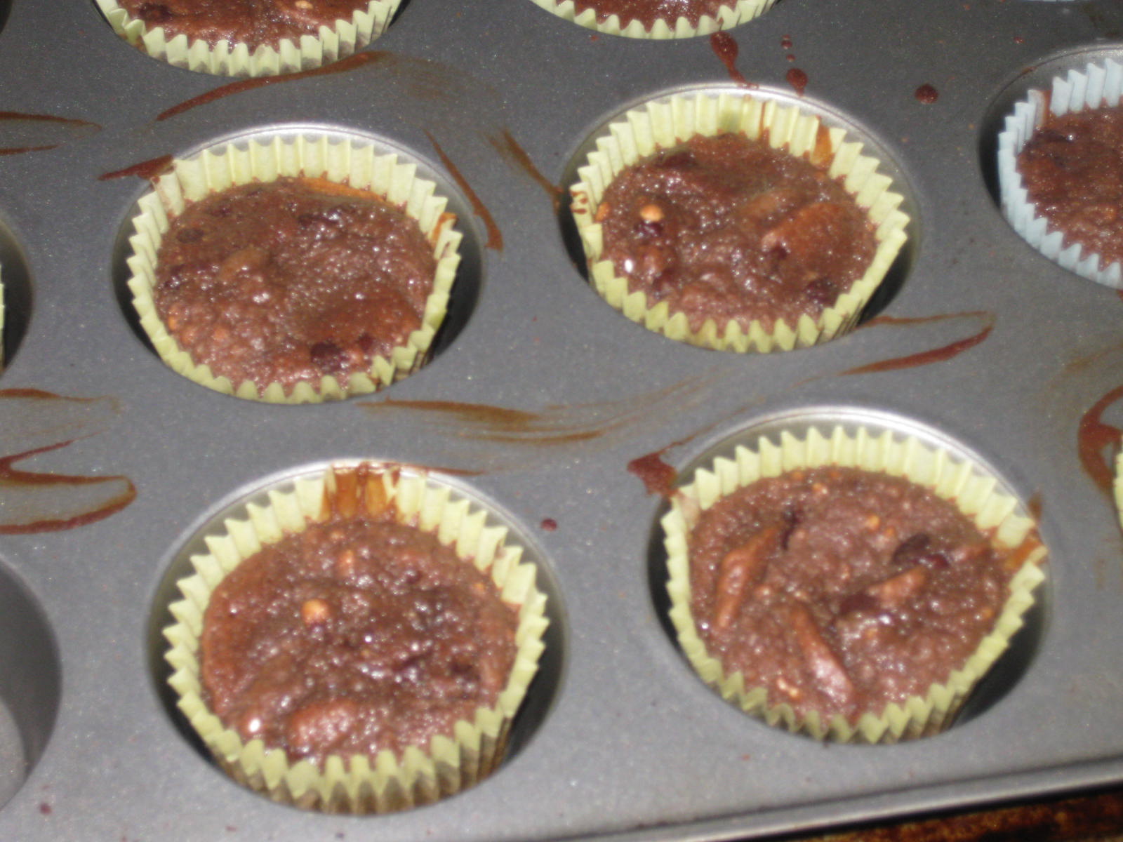 - LINE 12 muffin pan cups with paper liners; spray with cooking spray. Place some broken cookie pieces on bottom of each cup; cover with batter.