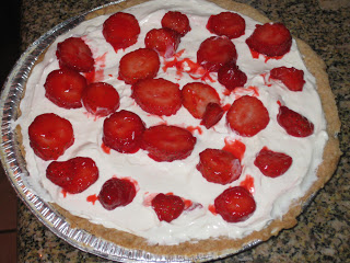 - Spoon about 1/3 of the marshmallow mixture into pie crust; 2/3 strawberry mixture, and the remaining 2/3 marshmallow mixture. Top with remaining strawberry mixture.