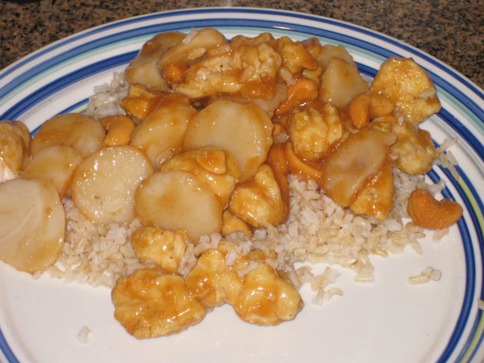- Microwave water chestnuts for 45 seconds. Place chestnuts and cooked chicken in a bowl, top with sauce, and toss to coat. Sprinkle with sesame seeds or cashews if desired. If you like, add a sprinkle of red pepper flakes. Eat up!