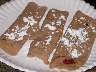 - When ready to eat, fill with 1 tsp jelly, melted chocolate or cream cheese and roll up. Sprinkle with powdered sugar and or top with maple syrup if desired.