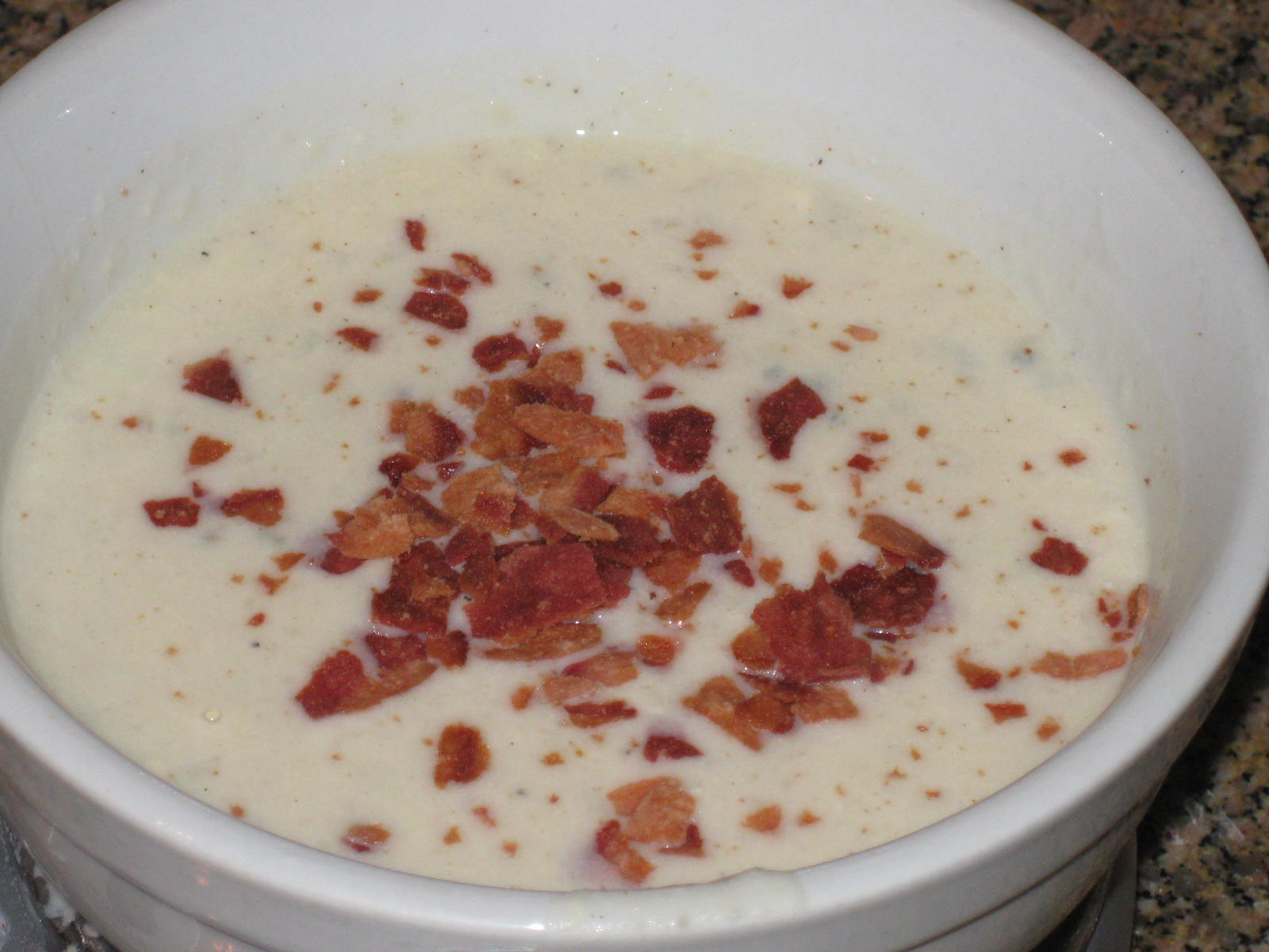 - Spoon into bowls and garnish with crushed bacon if desired.